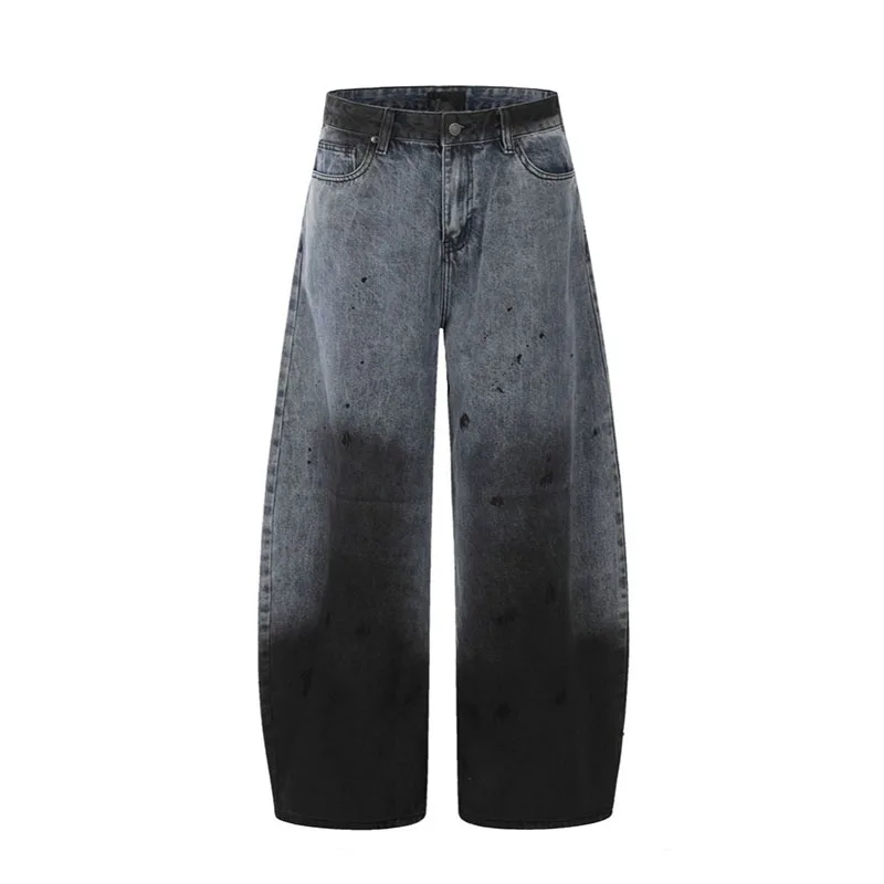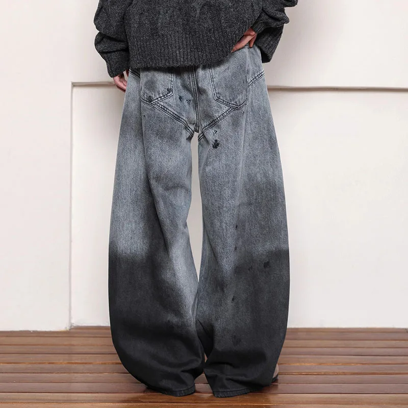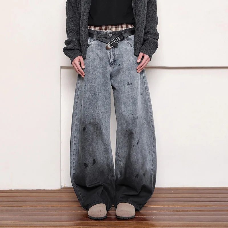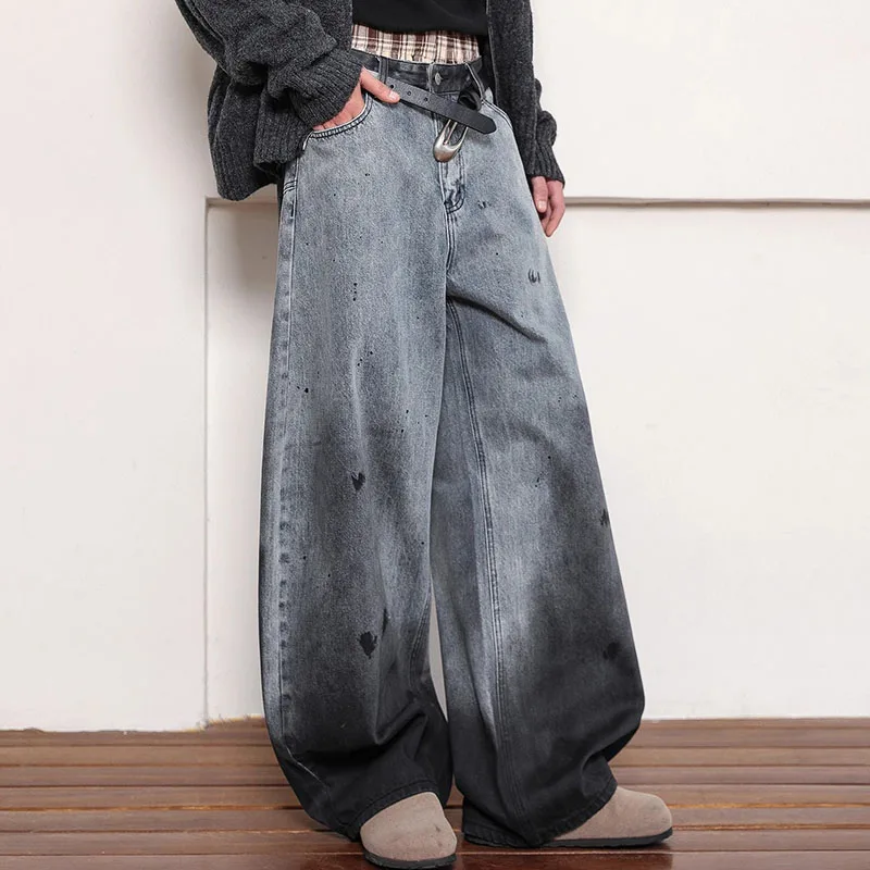 Autumn Korean Retro Splashed Ink Graffiti Denim Curved Knife Pants Baggy Jeans Y2k Fashion Women Pants Casual Straight Leg Pant