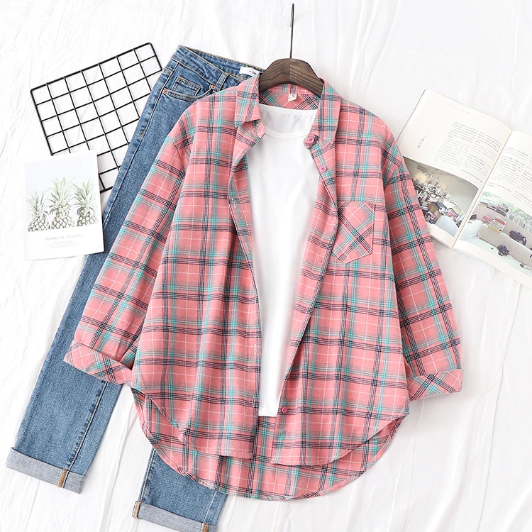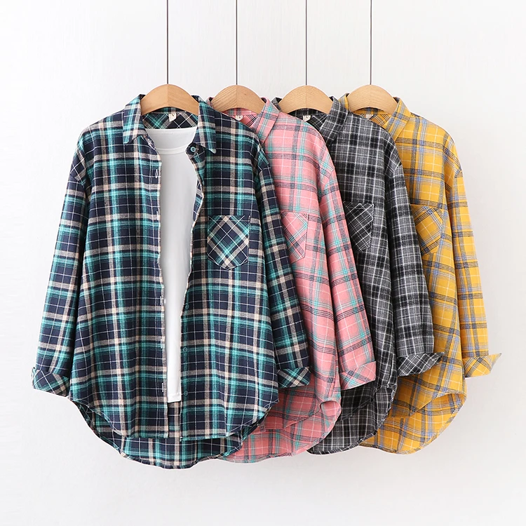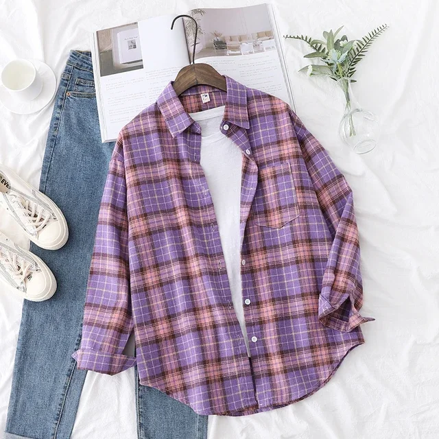 Elegant Women's Plaid Shirt 2024 New Ladies Large Size Casual Loose Lapel Long Sleeve Blouse&Tops Female Lapel Checked Clothing